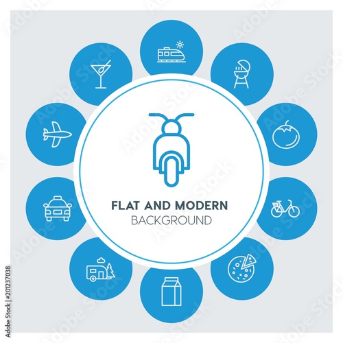 transports, food, drinks, travel Infographic Circle outline Icons Set. Contains such Icons as business, website, elements, background, pattern, banner and more. ..Fully Editable. Pixel Perfect
