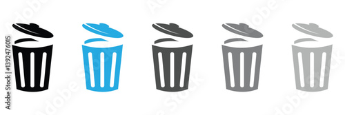 Trash can icon in black and white in round circle, Trash garbage can, bin waste vector, Suitable for Web Sites, Books, Cards, Apps . Vector Illustration .EPS 10 .
