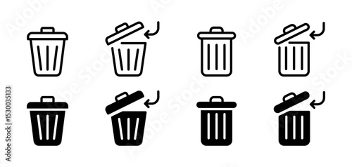 Trash can vector icon set. Trash bin icons. Delete symbols. Rubbish baskets.