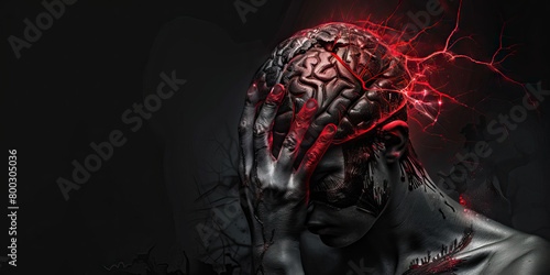 Traumatic Brain Injury: The Cognitive Impairment and Headache - Visualize a person with a bandaged head, holding their head in pain, with a cracked skull symbolizing injury