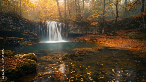 Traumhafter Wasserfall in die Natur eingebettet. Das Wasser rauscht und schafft eine friedliche und meditative Atmosphäre. Gefühl der Achtsamkeit.
