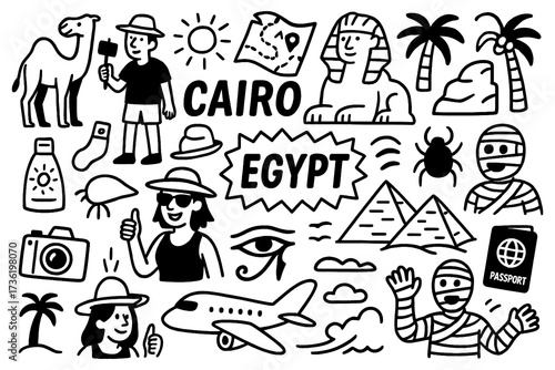 travel doodle composition with egypt culture icons and ancient holiday elements, Transparent Background