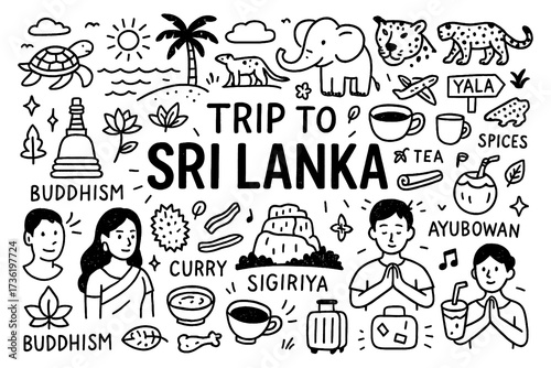 travel doodle composition with sri lanka culture icons and traditional holiday elements, Transparent Background