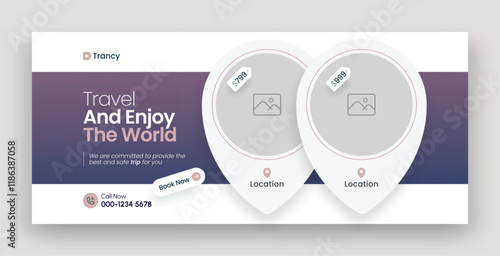 Travel holiday vacation web banner and facebook timeline cover header design template