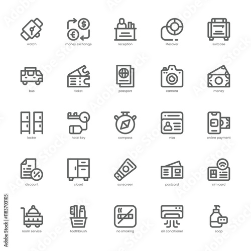 Travel icon pack for your website, mobile, presentation, and logo design. Travel icon outline design. Vector graphics illustration and editable stroke.