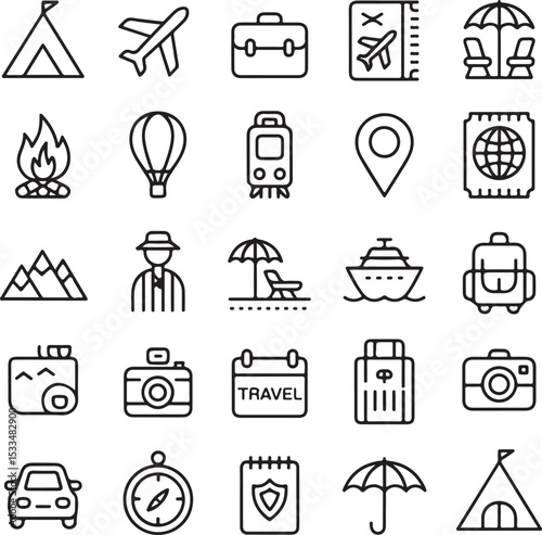 "Travel Icon Set | Vacation & Tourism Vector Symbols" "Travel Icons Bundle | Adventure & Holiday Clipart" "Tourism Vector Icons | Flat Travel Design Pack" "World Travel Icon Collection | Outline St