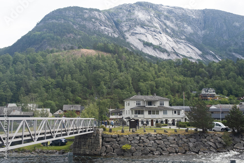 Travel in Eidfjord with Riverside Village and Mountain Backdrop