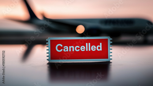 Travel restrictions policy concept, Cancelled flight ticket with airplane in background, evoking disappointment