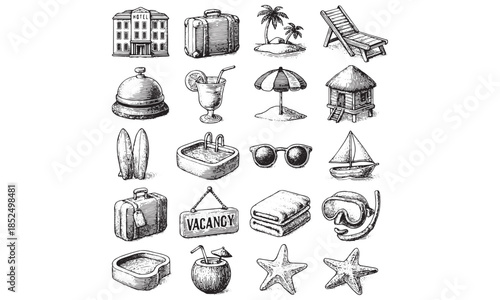 Travel Vacation Icon Set Hand Drawn Sketch Style Vector Collection