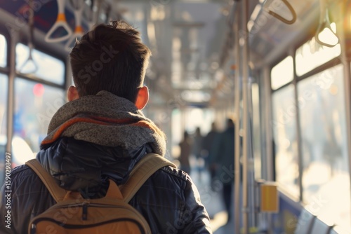 Traveler Using Public Transportation in a Busy City Environment