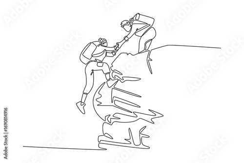 Traveler Valley Mountain concept. Single line draw design. Vector graphic illustration