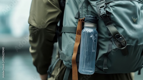 Traveler with Backpack and Sealed Water Bottle