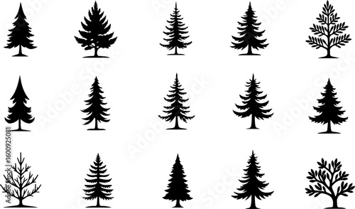 Tree Pine, Fir & Deciduous Tree Icons vector bundle