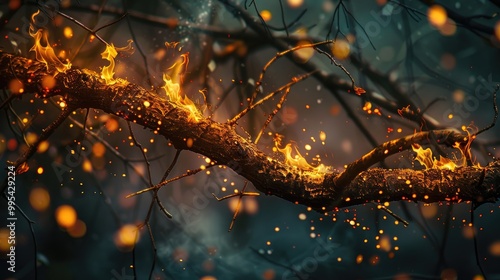 tree branch on fire