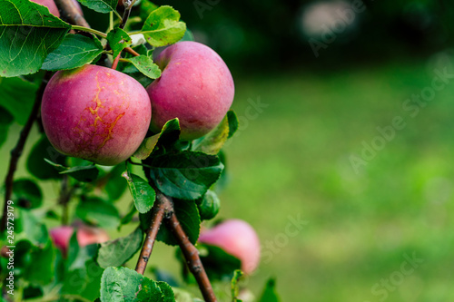 Tree Branches Full of Red Fresh Apples in the Garden, Vegetation Background - Sunny Autumn Day
