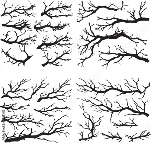 Tree Branches Vector Silhouette Set