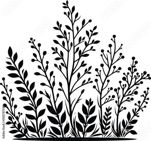 Tree, bushes & Foliage black silhouette vector illustration on isolated white background