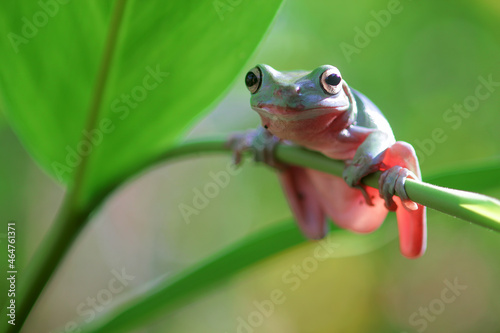 tree frog, dumpy frog, green tree frog on leaves and flowers