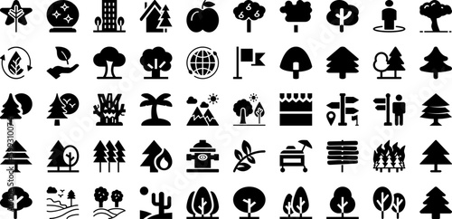 Tree Icon Set Isolated Silhouette Solid Icons With Vector, Illustration, Plant, Design, Tree, Symbol, Icon Infographic Simple Vector Illustration