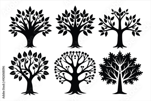 Tree Icon Set on White Background