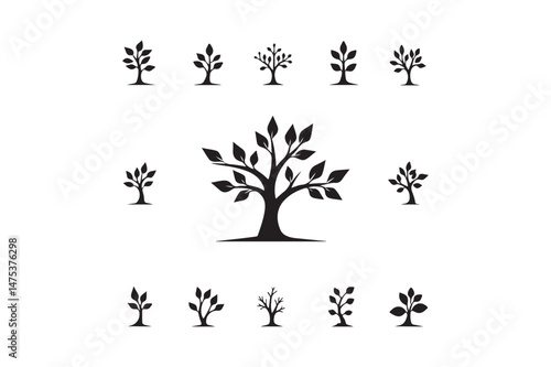 Tree Icon Set Silhouette Vector Minimal Nature Symbol Collection for Design