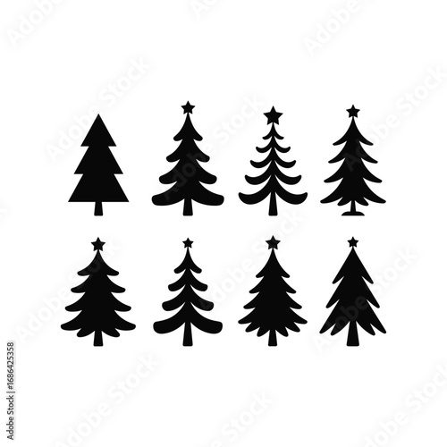 tree silhouette Vector Minimalist and Trendy tree Silhouette Design, set of silhouettes of trees on white background. Holyday and Christmas tree bundle.