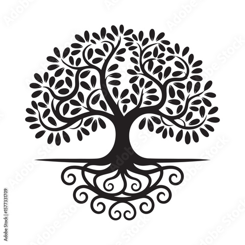Tree Silhouette with Detailed Branches and Roots — Ideal for Decorative Art, Logos, and Symbolic Designs