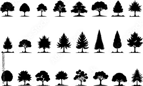Tree Silhouettes, Forest Shapes, Pine Trees,