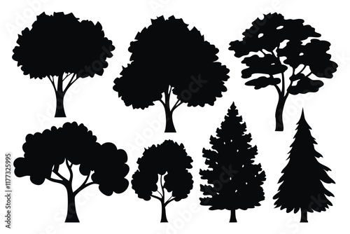 Tree silhouettes set isolated flat vector illustration on white background