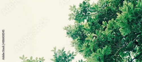Tree themed wallpaper background with lush green foliage against a white backdrop showcasing beautiful nature and providing room for text or images. with copy space image