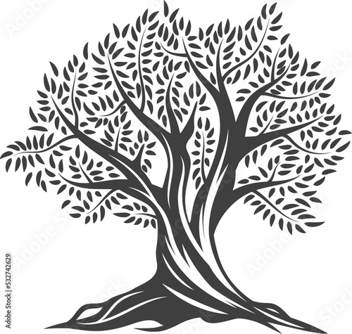 Tree trunk, monochrome crown with olive leaves