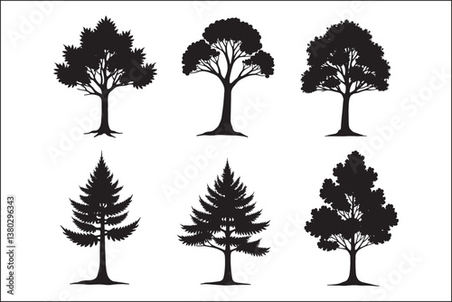 Tree Vector Silhouette – Nature and Forest Design Clipart Minimalist Tree Illustration – Black Silhouette Vector Art Botanical Tree Silhouette – Elegant Nature Vector Design Woodland Tree Vector –