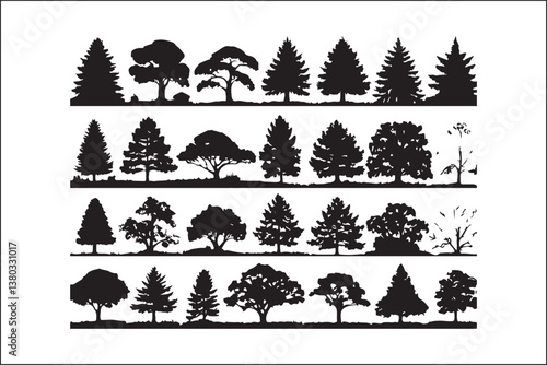 Tree Vector Silhouette – Nature and Forest Design Clipart Minimalist Tree Illustration – Black Silhouette Vector Art Botanical Tree Silhouette – Elegant Nature Vector Design Woodland Tree Vector –