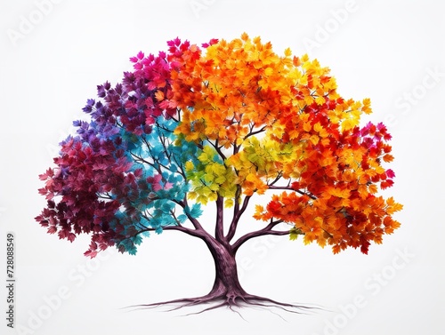 Tree with Multicolored Leaves Diversity and Change Isolated on White Background AI Generated