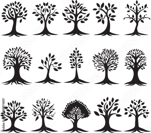 Trees silhouettes set isolated graphic tree logos