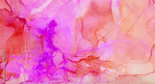 Trendy bright light pink alcohol ink abstract background. Smudged soft flow liquid watercolor paint splash texture effect illustration for card design, modern banners, ethereal graphic design