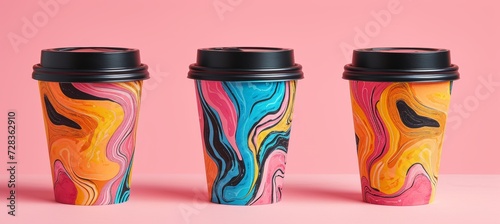 Trendy and artistic abstract coffee shop cup designs on a neutral pastel background