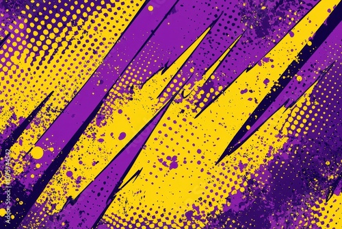 Trendy comic-style background in purple and yellow featuring intersecting abstract lines, creating a bold and modern look with a dynamic pop art influence..