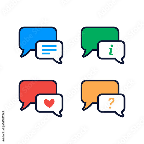 Trendy Flat Icons With Speech Bubbles. Set. Vector
