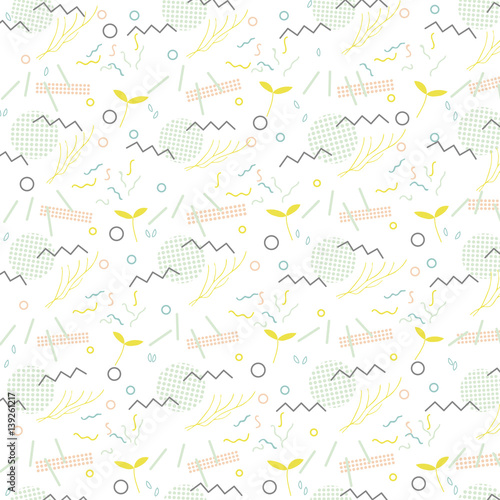 Trendy geometric elements memphis card. Pattern for tissue and postcards. Spring poster background. Vector illustration