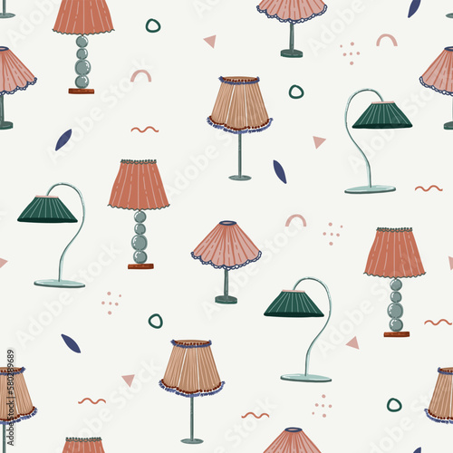 Trendy Hand drawn Cozy Home Decoration seamless pattern illustration vector