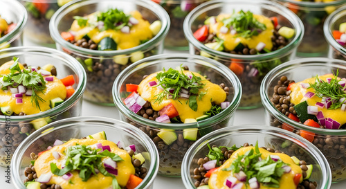 Trendy Lentil Salad Presentation: A Tapestry of Freshness in Transparent Jars