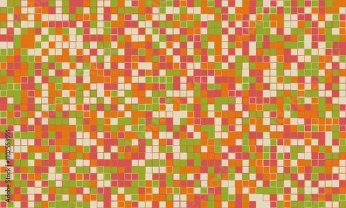 Trendy mosaic-style pattern with structured geometry. A vibrant, colourful grid design ideal for cover art, fabric, or creative posters.