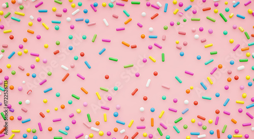 Trendy pattern of colorful sprinkles on pink background, abstract design for banner, poster, flyer, card, postcard, cover, brochure.