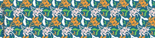 Trendy vector floral pattern with organic botanical shapes border. Modern bold summer flower print, ribbon design in scandi style.