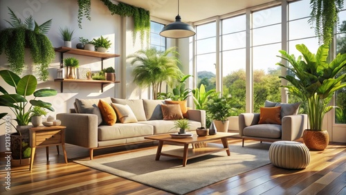 Trendy Wellness Living Room Interior Design: Candid Photography AI Art