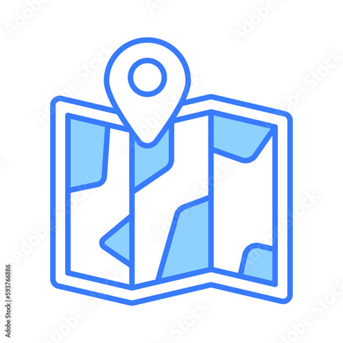 Tri Fold chart with location pointer, trendy icon of map location