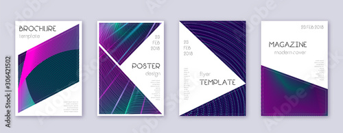 Triangle brochure design template set. Neon abstra