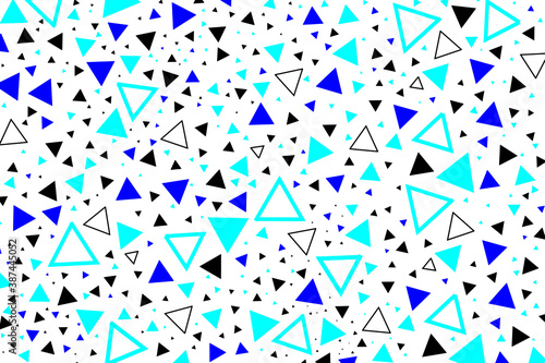 Triangles cold colors abstract geometric pattern design. Memphis style light and dark blue and black triangles pattern on white backgroun. Geometric triangles shape trendy vector design