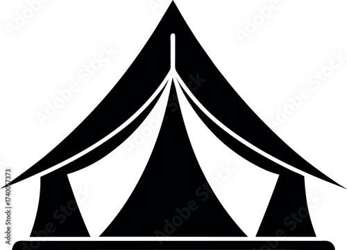 Triangular Camping Tent Silhouette with Draped Sides and Open Entrance Vector Illustration